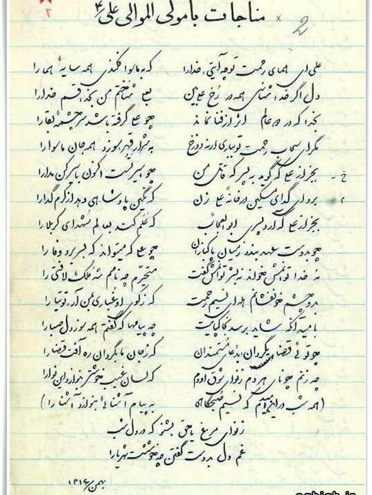 دستخط «استاد شهریار» و غزل معروف استاد در وصف حضرت علی «ع»