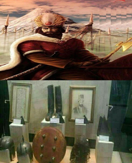 نادیرشاه_اووشار 💢لباس رزم و سلاح و سپر نادرشاه کبیر، پادشاه سلسله عظیم تورک اووشار (افشار).